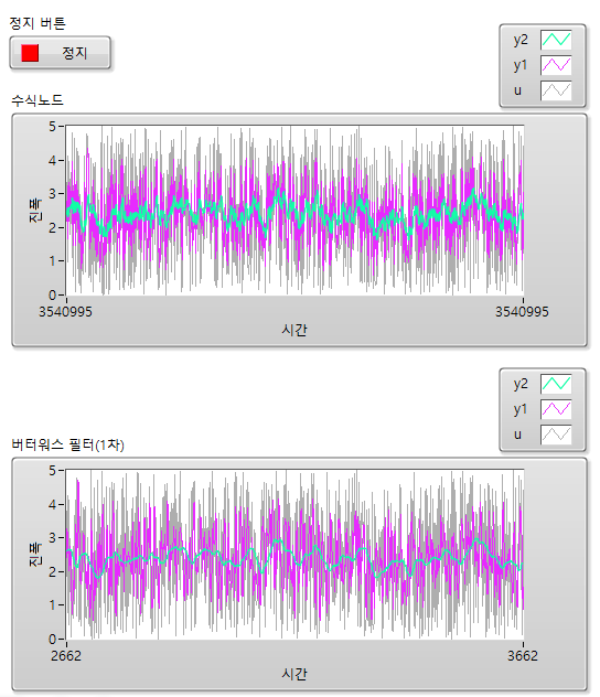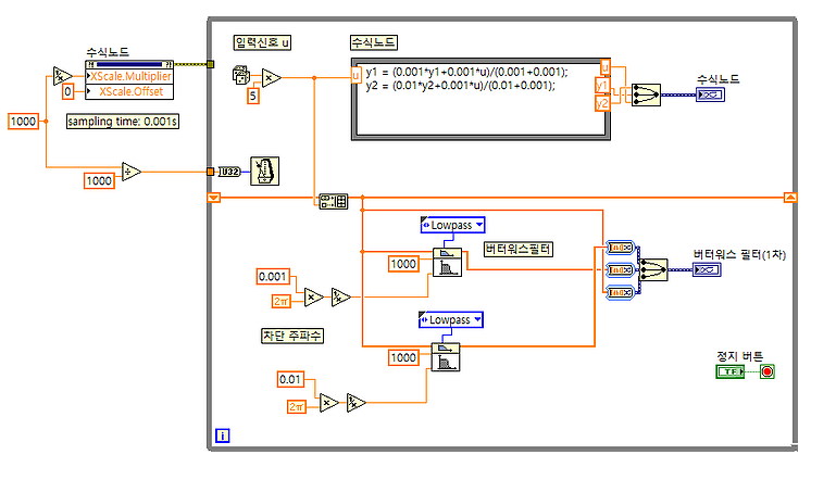 사실 필터를 제대로 설명하고자 한다면 수십 페이지 이상의 자료가 필요할 것이며, 나의 역량으로는 부족하다. 이 페이지에서는 1차 필터의 개념을 간단하게 설명, 수식노드에서 구현한 C코드와 labview 내 함수를 이용한 필터를 비교해본다.