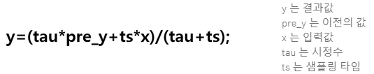 #tau값이 커질수록 데이터를 매끈하게 한다, 하지만 신호 대비 지연이 있다.